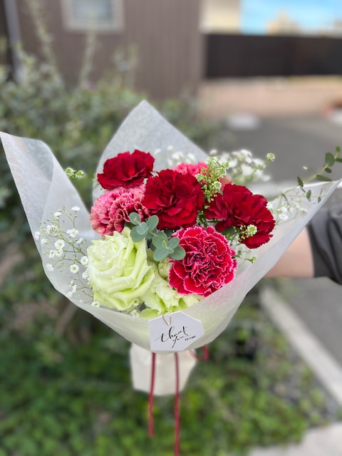 カーネーションをメインにお花をセレクトします。